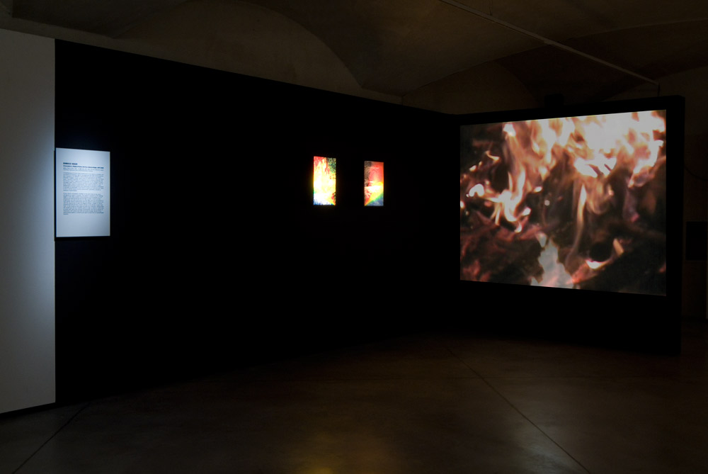 | Enrico Vezzi's installation testifies to the work that he has done alongside an expert in botany. The expert in question is the leading player in this video entitled Chromosphere, and he guides us on a difficult and disorientating trek through a wood. As the journey progresses, our sole focal point is a dim light, and the soundtrack is only partial. Vezzi's relationship with the expert is what provided him with the opportunity to take his Magical Photos: images of nature experienced almost from scratch thanks to his taking a totally fresh look. In this instance Vezzi plays the part of an observer, setting aside the traditional role of a creative artist in order to relate to others and to share with them the concept of authorship. His work is based on interaction with others and with the world at large, devoid of any preconceived pattern or scheme and open to every kind of unpredictable solution. |